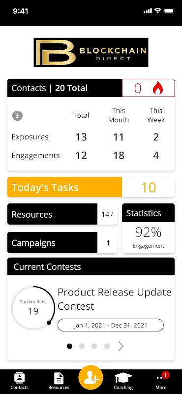 Attract, communicate and engage with your team and prospects from one place through Blockchain Direct. This app has been designed with your business in mind. It’s simple to use and has all the features you need to connect and grow your business relationships effectively.