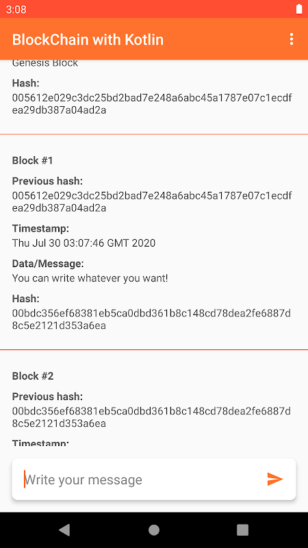 This mobile app is an example to learn how Blockchain works as an Android app using Kotlin.