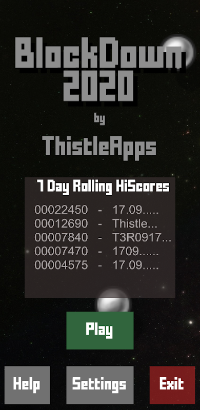 On the initial screen when the app loads you will see a HiScore table. These scores are cross platform and are a rolling 7 day HiScore. Meaning you have to keep playing to maintain your name in the HiScore table.