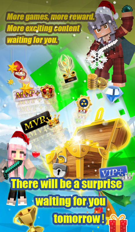 Roles level up, Golden rewards, Game Experience and Daily Check-in, all of these relate with rewards in Blockman Multiplayer for MCPE! Joining our community to find out more excited thing in server.