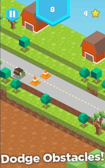 Select your animal and dodge as many objects as you can whilst you run down blocky road, avoid TNT, vehicles and swamps. See how much you can avoid by tapping to jump or switch road.