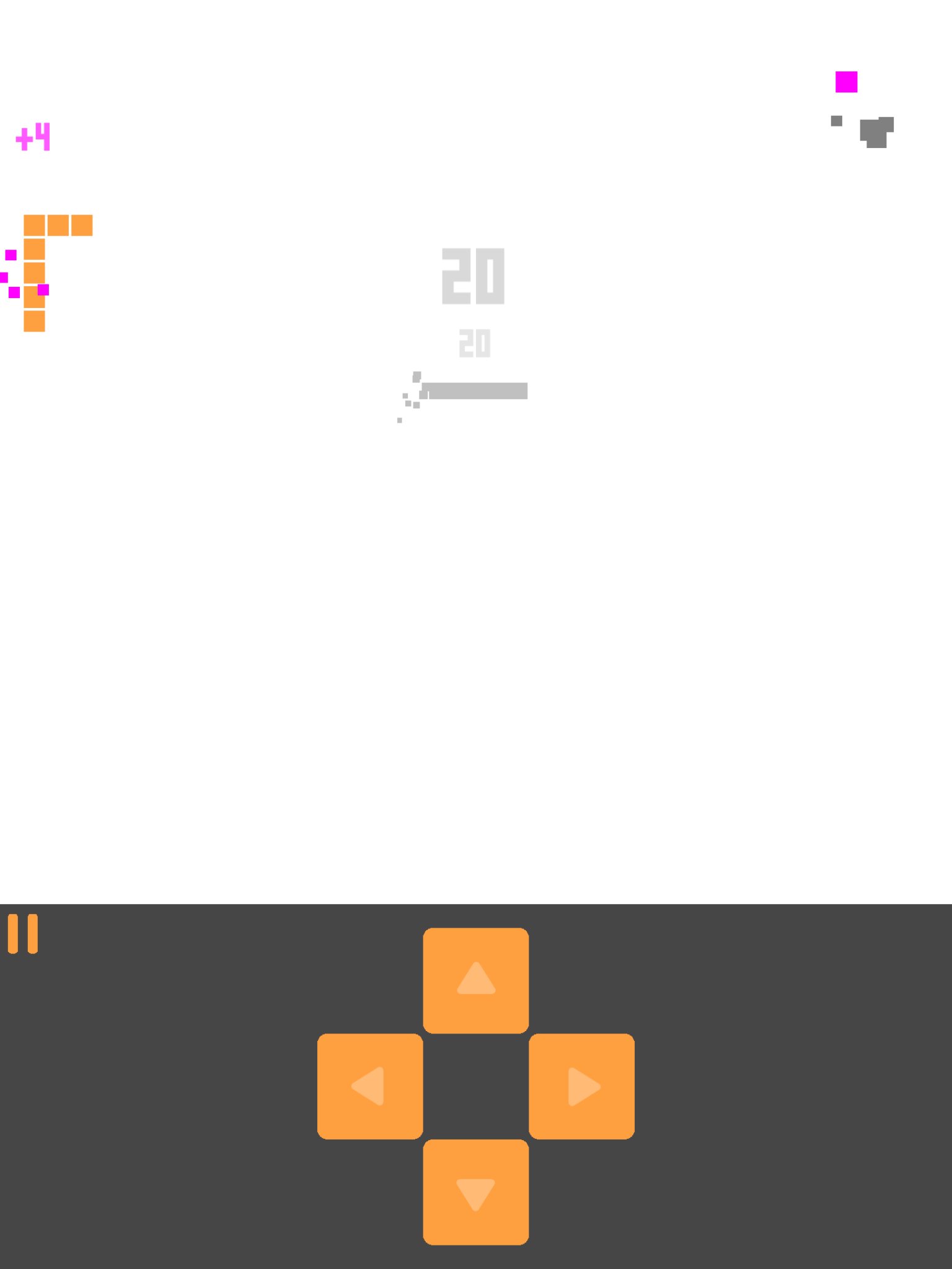 The snake game of 1997 is refurbished with a little bit of color added to fit in your pocket. Eat your blocks, grow as much as you can, and score the highest amongst your friends!