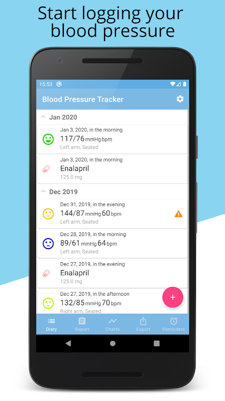 Use Blood Pressure Tracker app to store measurements and analyze trends in blood pressure changes.