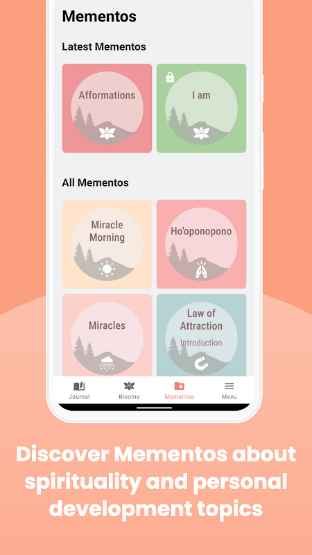 Blooming is an aid to your personal and spiritual development by offering you a diary, actions to take, quotes to be inspired, positive affirmations to live by, and inspiring and motivating videos for your personal evolution.