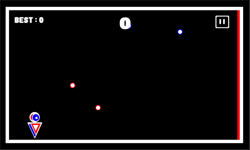 Your objective is to go from the blue point to the red point and then from the red point back to the blue point which increases your score by one while avoiding collision with the moving balls.