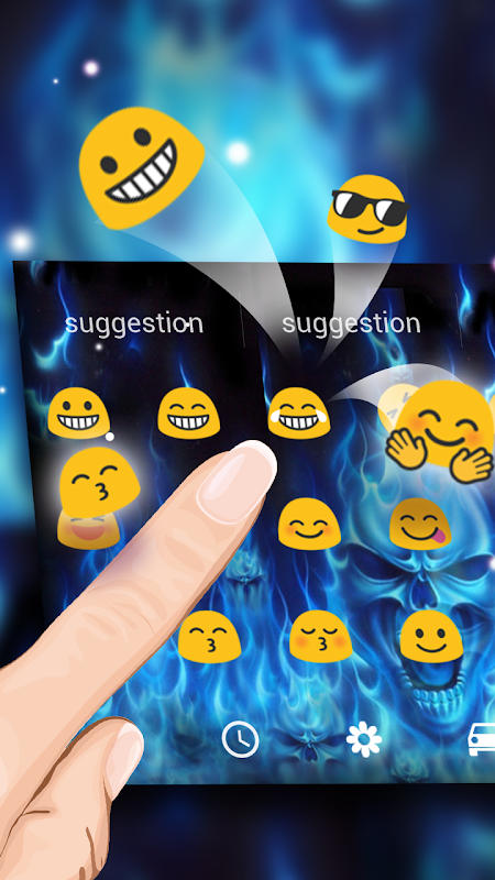 If you want us to make a special DIY wallpaper skin you just need to contact us via email. Let your phone a variety of cool animations unique. So get this blue flame skull keyboard theme now free!