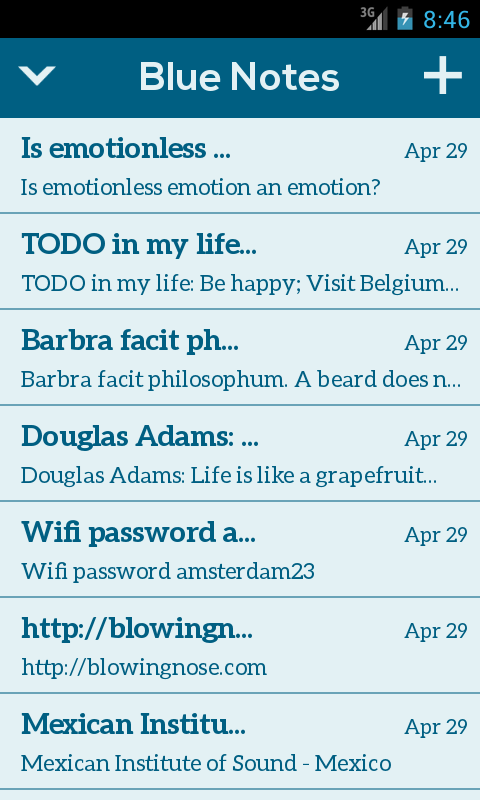 Blue Notes is a simple way to take notes. It does not offer you tons of features you will never use. You can simply manage plain text notes. We covered this into beautiful blue-colored design.
