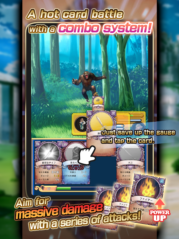 Tap the weapon and magic cards to defeat your enemies!