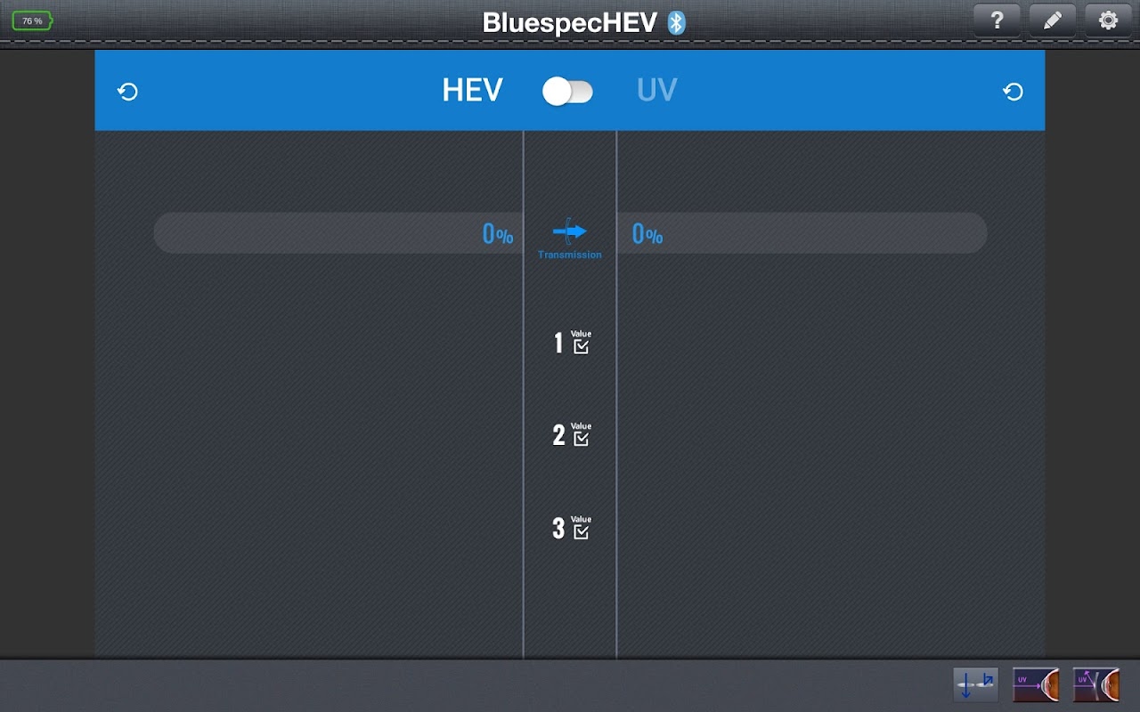 The App includes an unique menu that enables you to take a Blue light and UV measurement from light sources such as tablet or Fluorescent lights etc. with a Bluespec HEV module.