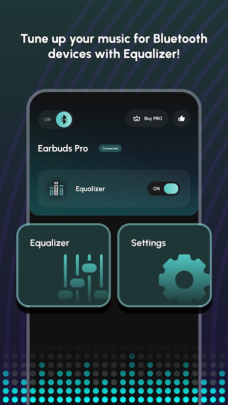 Bluetooth Equalizer empowers you to optimize your audio experience effortlessly. Whether you're a music enthusiast or simply seeking improved audio quality, our app offers the tools you need to achieve your desired sound. With customizable presets, precise controls, and a convenient floating widget, you'll have the power to create your ideal audio environment. Enhance your Bluetooth audio today with Bluetooth Equalizer.