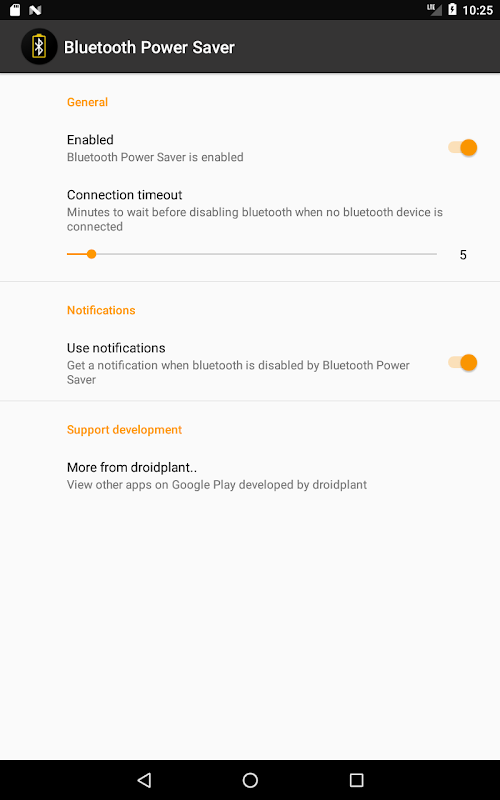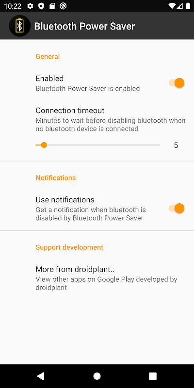 Limitations: Because of limitations in the Android platform, the support for multiple connected devices is limited. Bluetooth Power saver will disable Bluetooth if one Bluetooth device disconnects even if other devices are still connected unless the still connected devices use Bluetooth profiles HEALTH, HEADSET or A2DP.