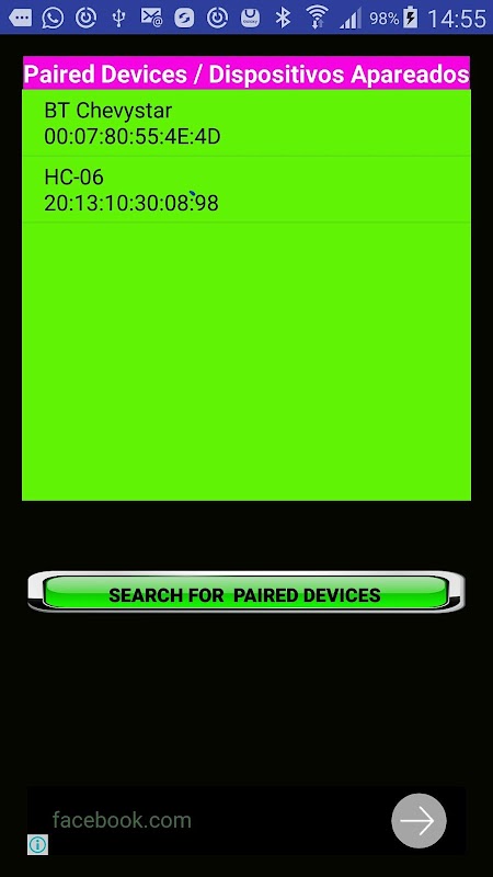 Receives and transmits message as a chat between your Android device and your electronic device. Bluetooth Pro can read messages you send. Bluetooth Pro allows you to send and receive alphabetic and numeric characters for control electronics and microcontrollers your device via Bluetooth communication.