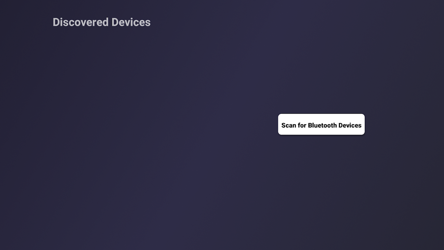 Easily scans and pairs Bluetooth devices with your Android TV. Design intended for Android TV.