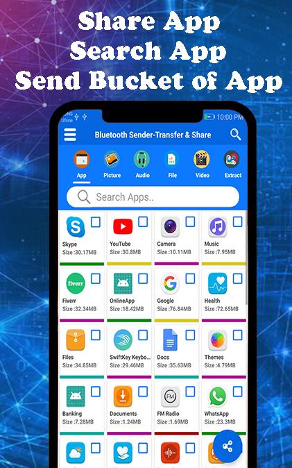 The Bluetooth Sender - Transfer & Share is one of the most important tool and is like a Swiss Knife which can send your Applications Apk, Audio Files, Document File, Video Files, Pictures File , PDF,Doc, ppt, Xls , txt , html any File via Bluetooth.and also 🔗 Share Via Social Media .