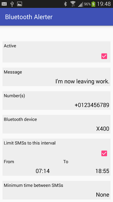Bluetooth Alerter is an app that will send a message (SMS) when your device connects to a selected bluetooth device.