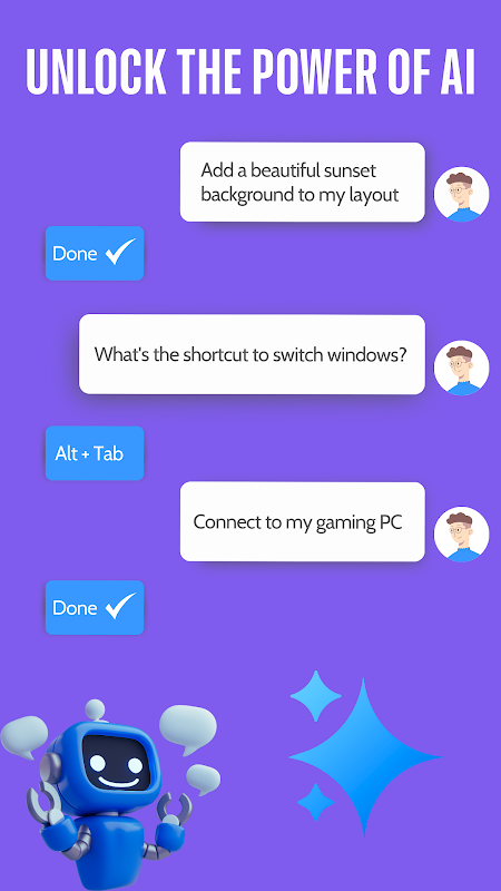 The app supports creating shortcut keys that can send a combination of up to six different keyboard keys simultaneously. For example, a user could create a shortcut key that sends the ctrl, alt, and delete keys at the same time to a connected PC.