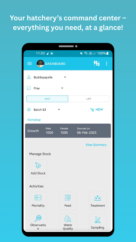 With BluH, you can also track inventory in real-time and manage production costs at a granular level for each batch in production. Our digital solutions provide integrated water quality kits, mobile-based dashboards, and web-based analytics engines for a 360-degree view of your hatchery operations. With multi-location support, multi-language multi-currency support, BluH is the ideal platform for hatchery management. Contact us today to learn more about how BluH can help you streamline your shrimp hatchery operations and improve profitability.