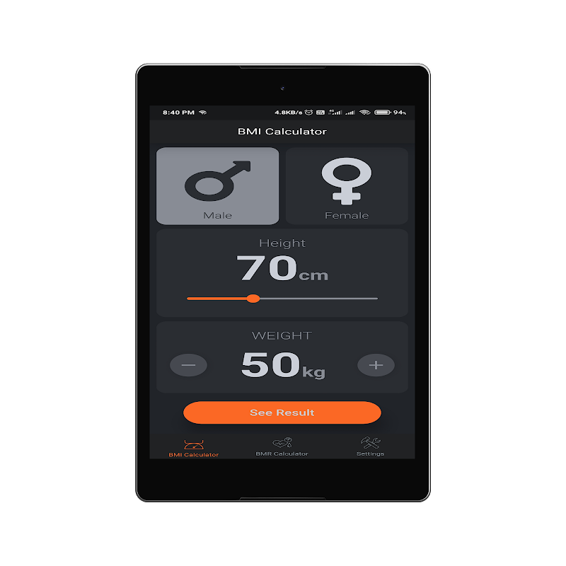 This app ensure accurate BMI and BMR results as per your input age, gender and height.