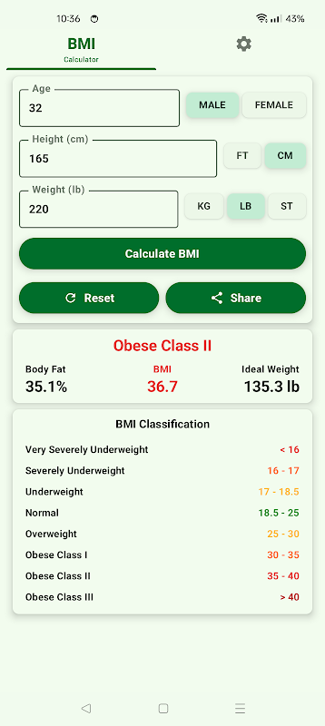 Whether you're on a weight loss journey, maintaining your current fitness, or just want to check your body metrics regularly, this app is the perfect tool. It supports both metric and imperial units and offers analysis based on your age and gender.