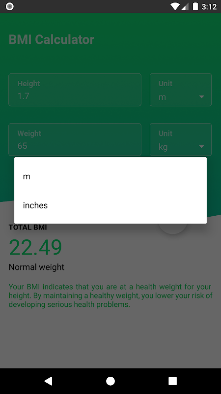An easy-to-use app that lets you calculate your Body Mass Index (BMI) based on your weight and height.