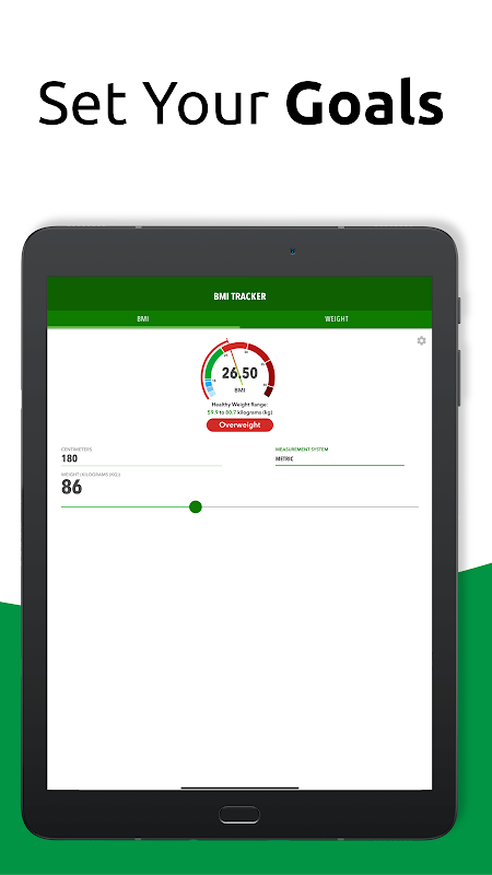 - Interactive, animated gauge that updates in real time as you adjust your weight, making it easy to see your current BMI.