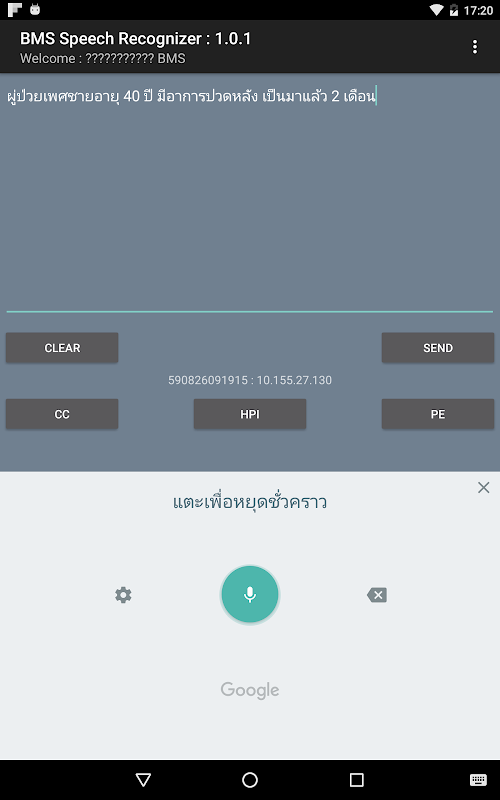 โปรแกรมสำหรับบุคลากรทางการแพทย์ ใช้แปลงคำพูดเป็นข้อความ เพื่อช่วยให้การตรวจรักษาผู้ป่วยเสร็จเร็วขึ้น เหมาะสำหรับแพทย์ / พยาบาล ที่พิมพ์ไม่คล่อง โดยโปรแกรมจะใช้ Google Speech Recognition Engine ช่วยแปล และจะส่งข้อความไปให้โปรแกรม BMS-HOSxP XE นำไปใส่ในช่องที่เกี่ยวข้องกัน เช่น