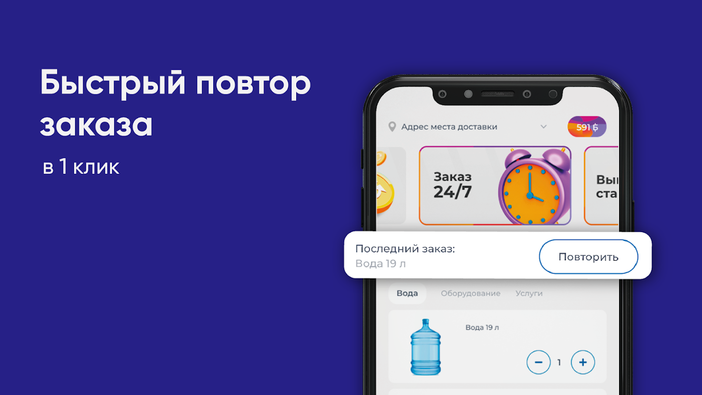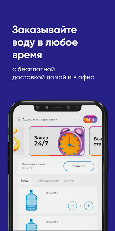 আপনার ফোনের জন্য একটি নিখরচায় অ্যাপ্লিকেশন ডাউনলোড করুন এবং একটি সুবিধাজনক সময়ে পরিষ্কার জল অর্ডার করুন!