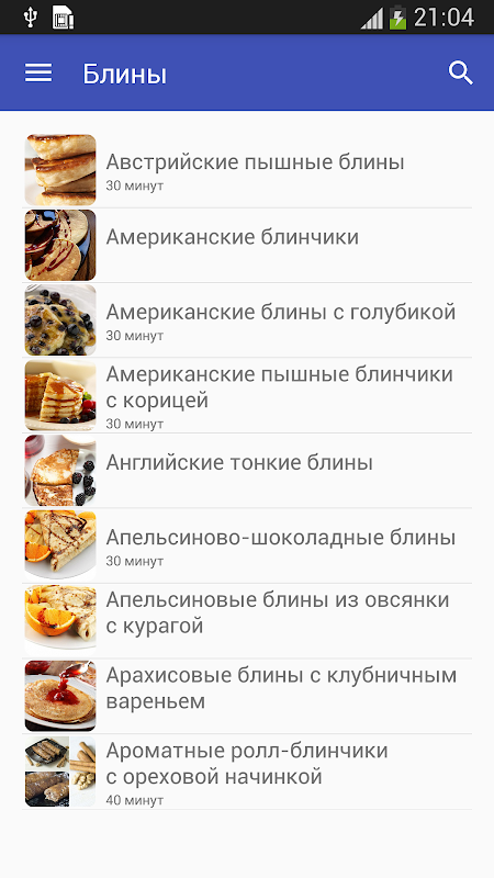 - поиск по базе рецептов (включая оладьи, налисники и русские блинчики)