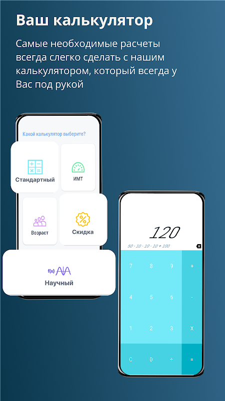 স্ট্যান্ডার্ড ক্যালকুলেটর, ডিসকাউন্ট, শতাংশ, বয়স এবং বৈজ্ঞানিক ক্যালকুলেটর