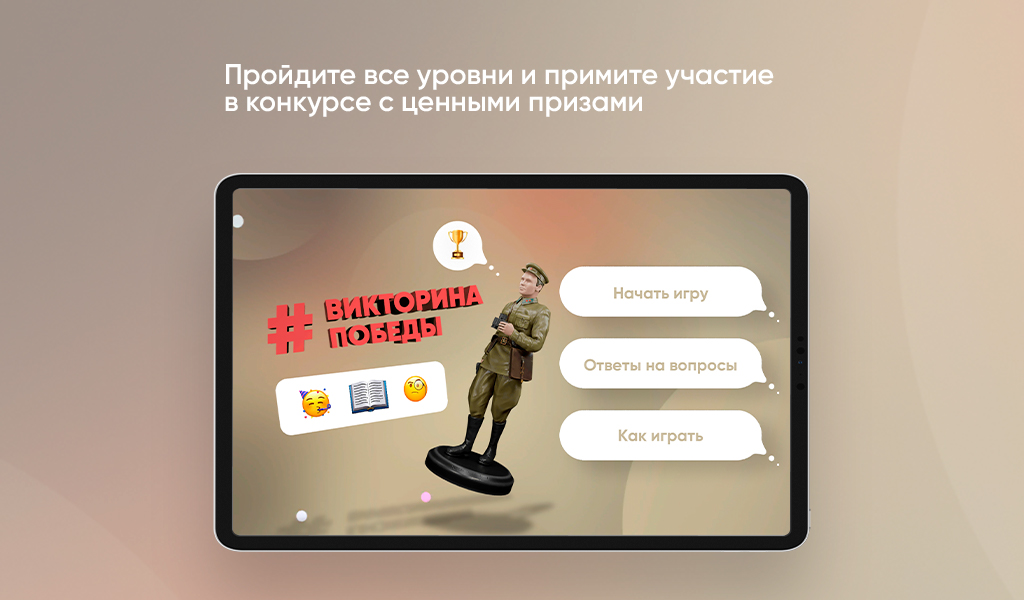 অ্যাপ্লিকেশনটির ফর্ম্যাটটিতে ক্লাসিক কুইজ এবং যুদ্ধ কৌশল মেকানিকস অন্তর্ভুক্ত রয়েছে, যখন আকর্ষণীয় খেলাটি শিক্ষামূলক সামগ্রীর সাথে মিলিত হয়। ভিক্টোরি কুইজটি খেলে শেখার নীতিটির ভিত্তিতে তৈরি।