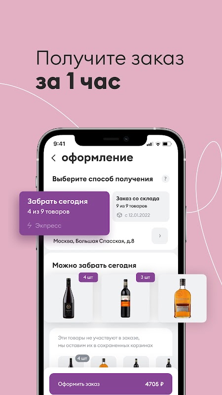 অ্যাপ্লিকেশনটি আপনাকে নির্বাচিত দোকানে পণ্যগুলির প্রাপ্যতা পরীক্ষা করতে এবং চব্বিশ ঘন্টা অ্যালকোহলযুক্ত বা অ অ্যালকোহলযুক্ত পানীয় সংরক্ষণ করতে দেয়। "এক্সপ্রেস অর্ডার" দোকানে রাখার পর 1 ঘন্টার মধ্যে পিকআপের জন্য উপলব্ধ। পণ্যটি নির্বাচিত দোকানে উপলব্ধ না হলে, আপনি অর্ডারের পরিমাণ এবং পরিমাণের উপর সীমাবদ্ধতা ছাড়াই "গুদাম থেকে অর্ডার" ব্যবহার করতে পারেন। গুদাম থেকে প্রি-অর্ডার - রিজার্ভেশনের জন্য উপলব্ধ পণ্য। নির্বাচিত দোকানের নিকটতম ডেলিভারির তারিখটি আপনার ব্যক্তিগত অ্যাকাউন্টে নির্দেশিত হবে।