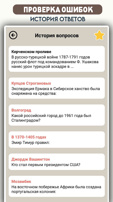 ইতিহাস একটি অত্যন্ত আকর্ষণীয় বিষয়। কিন্তু বিভিন্ন তারিখ এবং তথ্য একটি বিশাল সংখ্যা মনে রাখা কখনও কখনও খুব কঠিন। এই ক্ষেত্রে, বিভিন্ন সময়ের জন্য উত্তর সহ historicalতিহাসিক কুইজগুলি উদ্ধার করা হবে। এটি পাস করা উপাদানগুলি মুখস্থ করা এবং সংযোজন করা সহজ করে তোলে, সেইসাথে জ্ঞানের স্তরও পরীক্ষা করে। এই গেমটিতে আপনি বেশ কিছু আকর্ষণীয় কুইজ পেতে পারেন। আমরা আশা করি তারা অবশ্যই একটি কঠিন কিন্তু অত্যন্ত আকর্ষণীয় বিষয় - ইতিহাসকে আয়ত্ত করতে আপনাকে সাহায্য করবে। সর্বোপরি, যেমন আপনি জানেন, অতীতের জ্ঞান ছাড়া বর্তমান নেই।