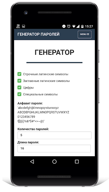 Удобное приложение для генерации паролей настраиваемой длины, содержащих цифры, символы разных регистров, специальные символы. Создавайте надёжные пароли и не беспокойтесь по поводу сохранности ваших аккаунтов.