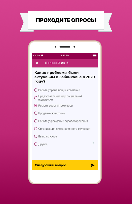 মোবাইল অ্যাপ্লিকেশন আপনাকে ট্রান্সবাইকালিয়ার বাসিন্দা হিসাবে উদ্বেগিত সমস্যাগুলি সম্পর্কে বাস্তব সময়ে রিপোর্ট করার অনুমতি দেবে: রাস্তায় গর্ত, গজ এবং খেলার মাঠের উন্নতি, তাপ সরবরাহের সমস্যা, পরিচালন সংস্থাগুলির কাজ এবং আরও অনেক কিছু।