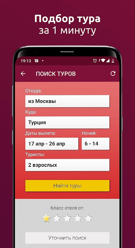 Во-вторых, вы не привязаны к местоположению. Вы можете заказать туры и горящие путевки из Минска, из Уфы, Екатеринбурга и СПБ и любой другой страны и города. Где бы вы не находились, наше приложение доступно для вас.