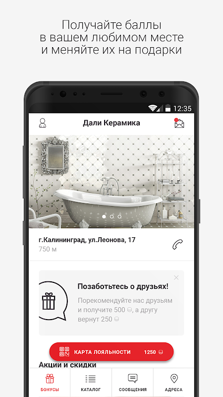 Мобильное приложение «Дали Керамика» -это накопительная карта скидок в вашем телефоне на керамическую плитку и сантехнику в сети салонов города Калининграда.