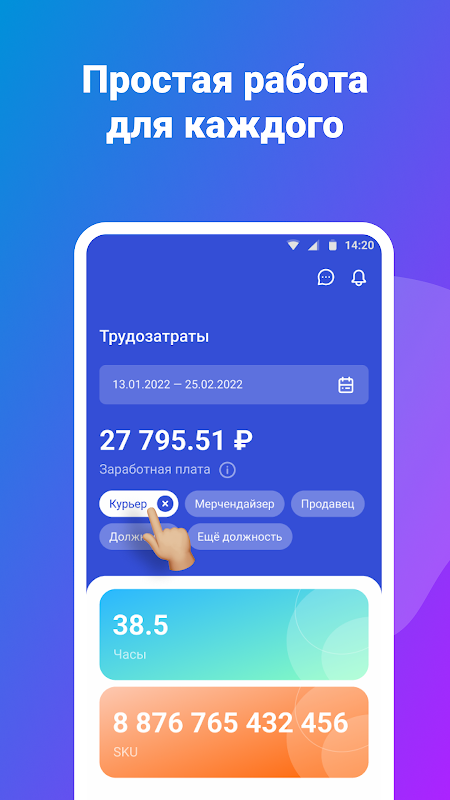 অ্যাপ্লিকেশনটির একজন ব্যক্তিগত ব্যবস্থাপক রয়েছে। তিনি যেকোনো প্রশ্নের উত্তর দেবেন, আপনাকে একটি বিনামূল্যের সময়সূচী সহ একটি চাকরি খুঁজে পেতে সহায়তা করবেন এবং সর্বদা যোগাযোগে থাকবেন। সর্বোপরি, খণ্ডকালীন কাজের সন্ধানে দীর্ঘ সময় লাগতে পারে, তবে আপনার পরামর্শদাতা থাকলে এটি ঘটবে না।