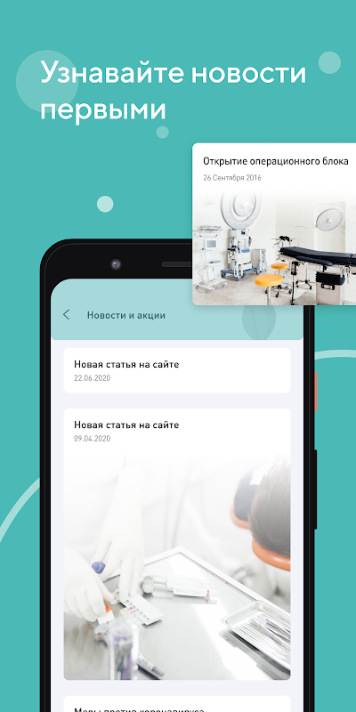 Благодаря нашему приложению вы всегда будете в курсе текущих акций, новостей, сможете познакомиться с коллективом наших клиник и получите доступ к списку оказываемых нами услуг и их стоимости.
