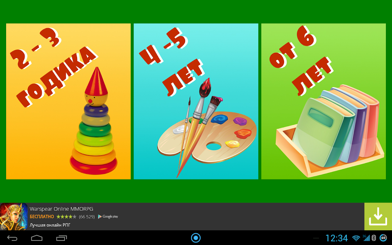 Три вида игр: пазлы, найти парные рисунки и стереть фигуру пальчиком.