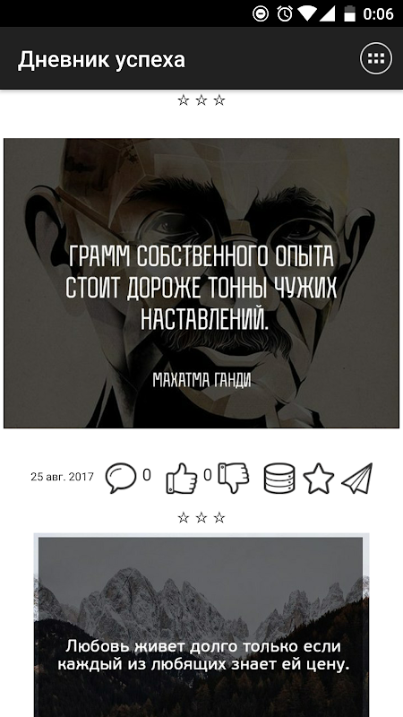 Понравившиеся записи можно комментировать и оценивать. Все понравившиеся картинки можно сохранять в галерее устройства в папке приложения. Ты можешь делиться записями с друзьями через социальные сети, а так же другие установленные на устройстве приложения. Ну и конечно, ты можешь оставлять лайки и сохранять записи в избранное.