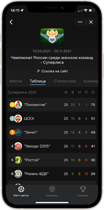 রাশিয়ান মহিলা ফুটবল সুপারলিগ অ্যাপ
