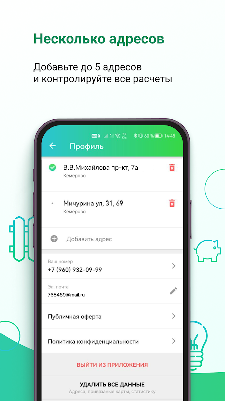 - একটি ব্যক্তিগত অ্যাকাউন্টে 5টি ঠিকানা পর্যন্ত - একটি পরিবার, ভাড়া আবাসন এবং পিতামাতার জন্য সুবিধাজনক৷