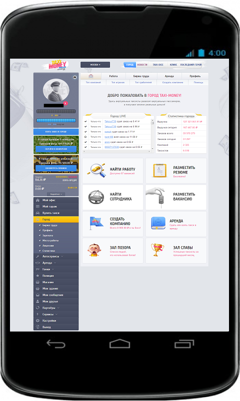 Taxi-money, economic game. Buy a taxi and earn real money!