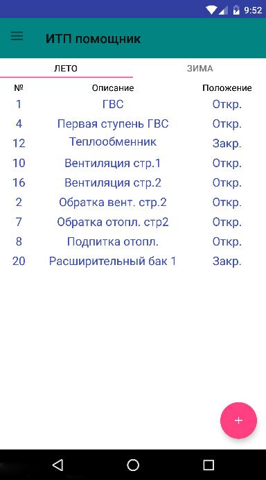 Каждый год персонал обслуживающий ИТП производит переключения задвижек на летний и зимний сезоны. Не всегда есть хорошие схемы, а тем более списки с указанием какие задвижки по номерам должны быть открыты/закрыты. В то же время не открытая или не закрытая задвижка может привести к неприятным последствиям. Данное приложение позволяет хранить сведения о правильном положении задвижек в тот или иной сезон, а функция сохранения в облако позволяет восстанавливать эти данные на другом телефоне или в случае смены телефона что очень удобно. Один раз вбив для себя положения задвижек в зимний и летний сезон Вы можете облегчить себе переключения в будующем!