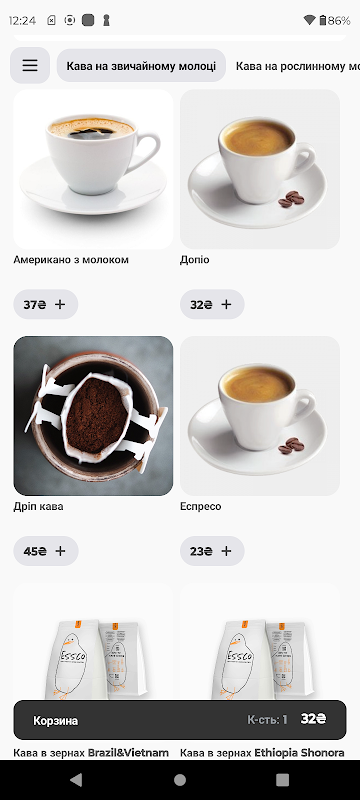 রিং অ্যাপ্লিকেশনে ক্যাফে কফি অর্ডার করার জন্য একটি সুবিধাজনক এবং দ্রুত পরিষেবা।