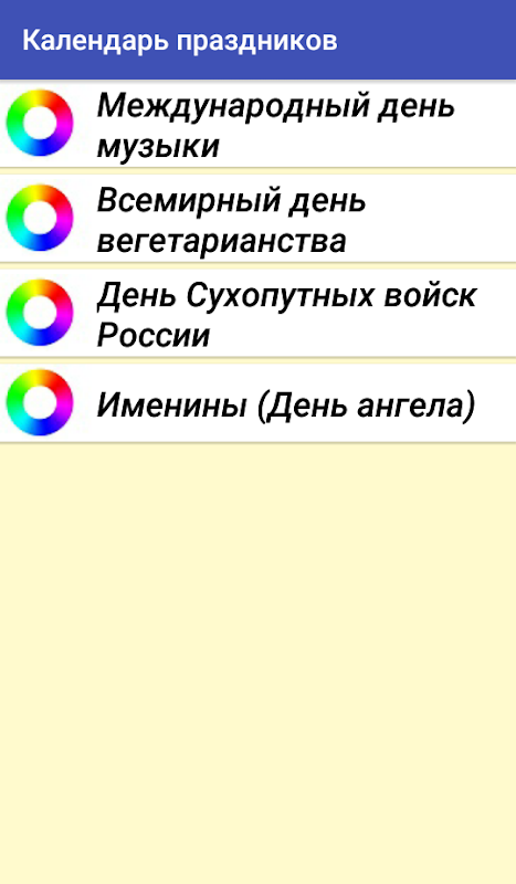 Календарь Праздников и Событий এর পুরানো সংস্করণ