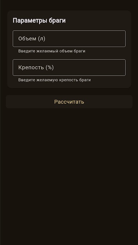 মুনশাইনার ক্যালকুলেটরটি পানীয় তৈরির জন্য প্রয়োজনীয় প্রযুক্তিগত গণনা করার জন্য ডিজাইন করা হয়েছে।