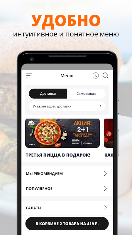আমরা সবচেয়ে কম সময়ের মধ্যে Zheleznodorozhny-এ Burgers এবং Pizza বিতরণ করি। অ্যাপ্লিকেশনে, আপনি দ্রুত একটি অর্ডার দিতে এবং বোনাস পয়েন্ট জমা করতে পারেন!