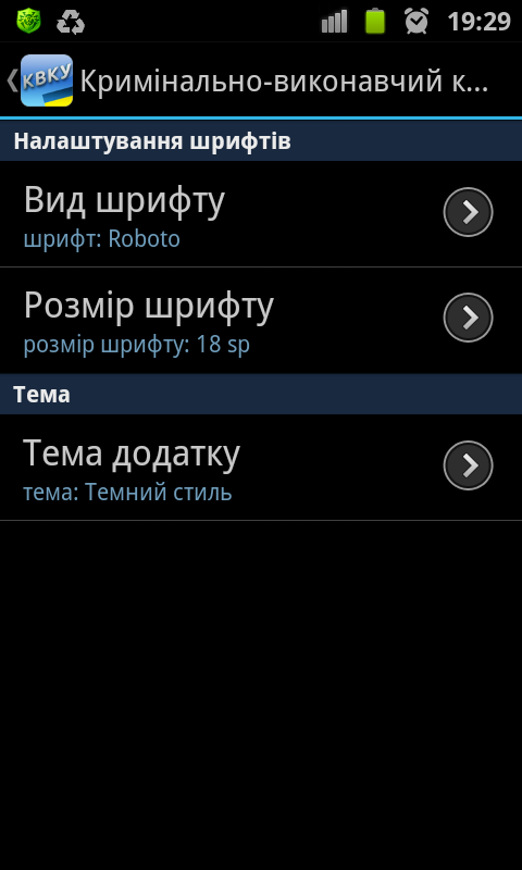 3. Різні налаштування - ви можете змінити шрифт і тему додатка.