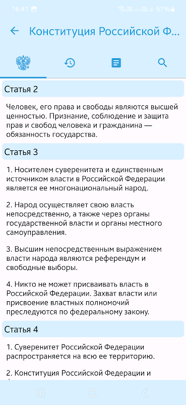 কোড, একটি সুবিধাজনক অফলাইন আকারে রাশিয়ান ফেডারেশনের সংবিধান।
